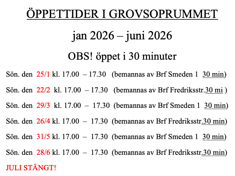 Grovsophämtning lördagen 13 april, vi börjar kl. 10.00.